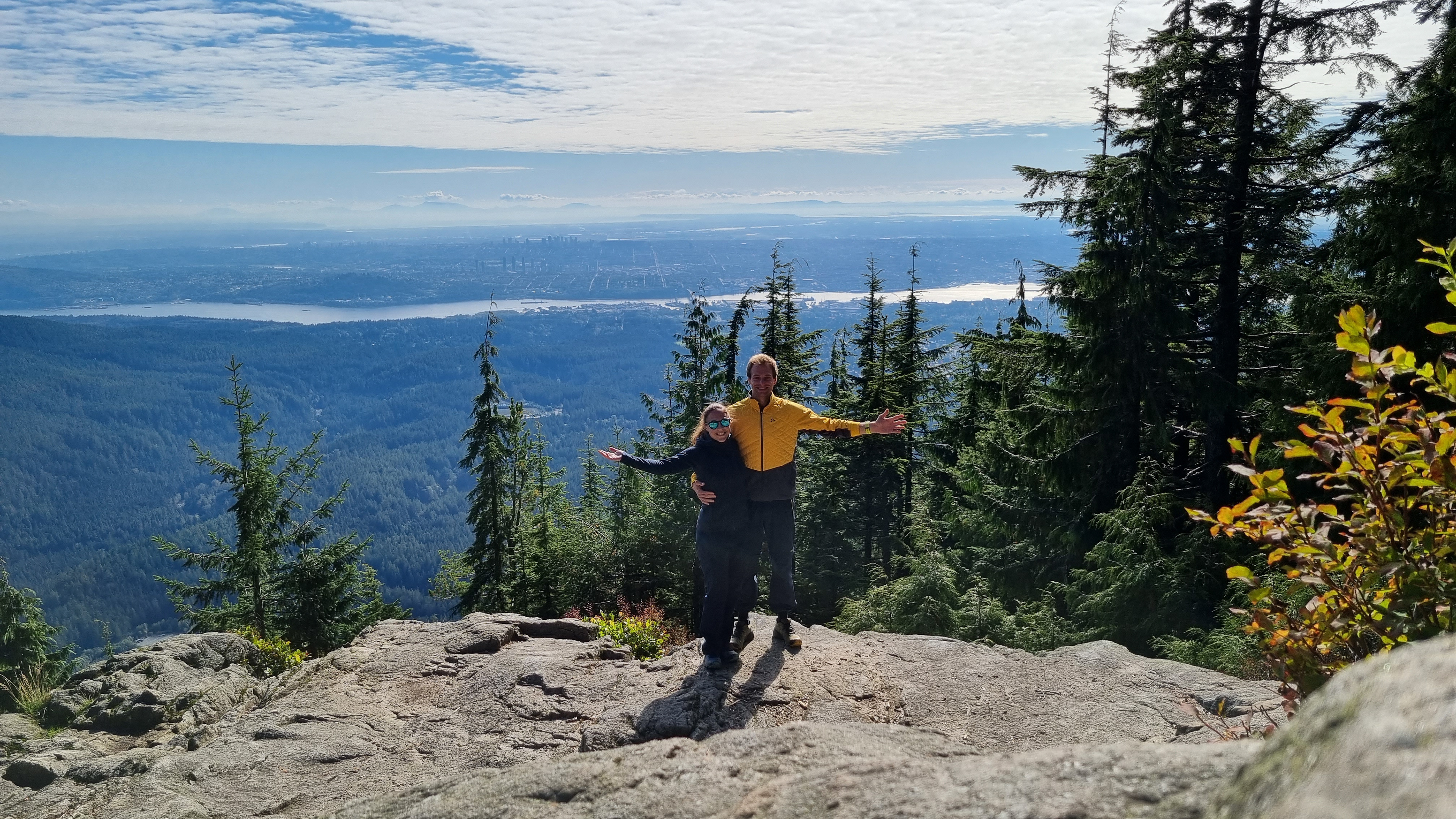 Am Freitag unternahmen wir unsere letzte Wanderung in Kanada. Wir sind mit dem ÖV in den Lynn Park gefahren. Was mit dem Auto etwas 30 Minuten Fahrzeit bedeutet, dauert mit dem Bus mehr als eine Stunde. Dort gibt es einen Fluss so klar wie im Verzascatal und einige Hängebrücken. Jetzt im Herbst ist es besonders eindrücklich dort. Anschliessend wanderten wir noch auf den Lynn Peak und konnten so noch ein letztes Mal den Blick in die Ferne von Kanada bis hin zu USA schweifen lassen.